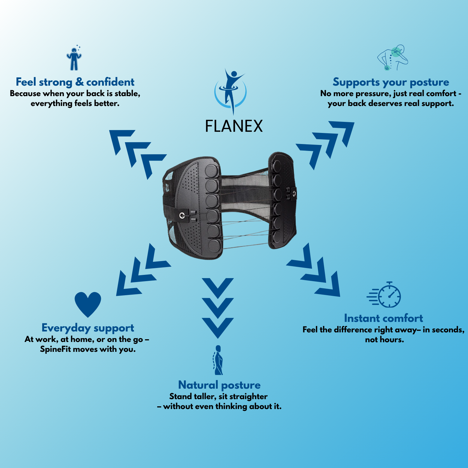Flanex gently encourages an upright posture for everyday comfort.You’ll notice the support within minutes.